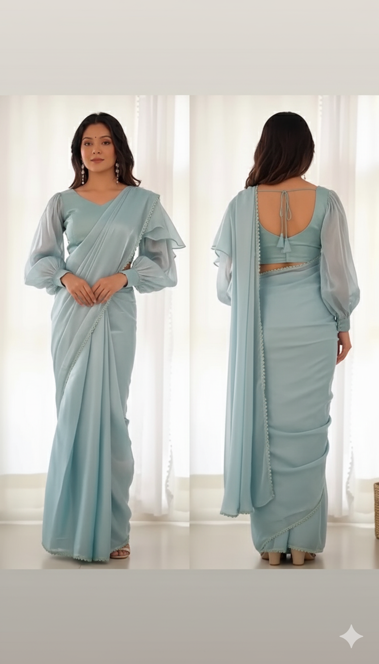The Embroidered Ruffled Saree is a perfect blend of tradition and contemporary design, making it a must-have for modern women who love elegance and style. Its premium fabric, intricate embroidery, and playful ruffles ensure you look regal, confident, and fashionable at any occasion.