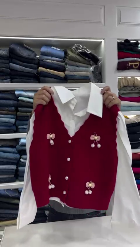 Women’s Long Sleeve Shirt with Knitted Sleeveless Vintage Oversized Cute Sweaters
