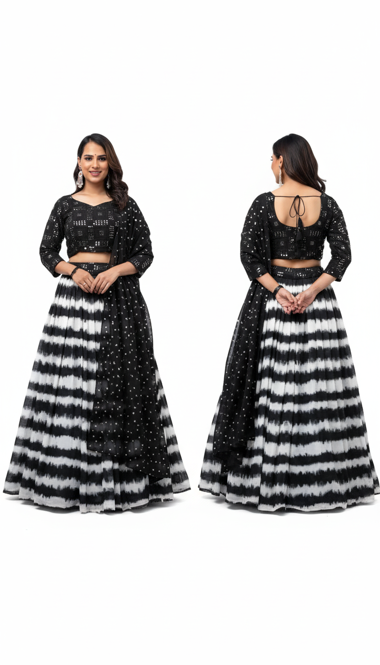Complete Ensemble – Includes lehenga, choli, and dupatta for a cohesive ethnic look.